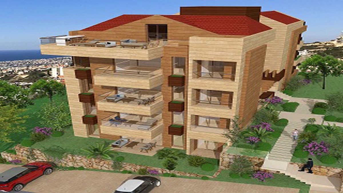 Apartment for Sale Blat Jbeil First Floor Area 108Sqm. A hill overlooking the sea and the mountain, about 500 meters from the Lebanese American University. And a few minutes from the city of Byblos. Great finishing lux specifications. 2 bedrooms 2 bathrooms underground parking, natural stone cladding.