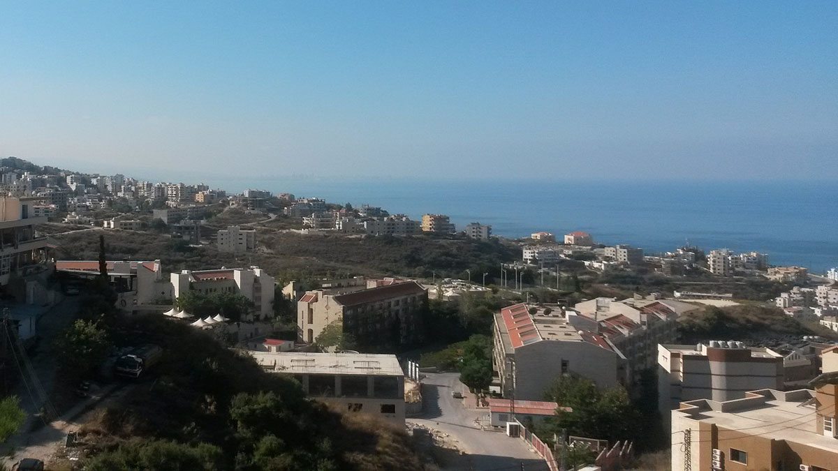 Land for sale ;Blat Jbeil near LAU university . Downhill overlooking the sea between two roads. It is less than 200 meters from the lower road and less than 500 meters from the second road.